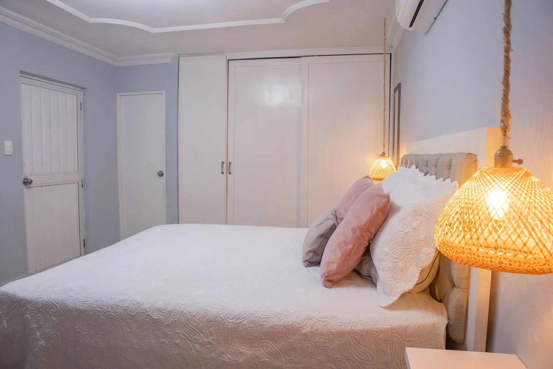 6 habitaciones confortables para 16 personas, 4 camas dobles, 1 cama Queen y seis camas sencillas, aire acondicionado, con camas y lencería de lujo para un descanso como lo mereces.